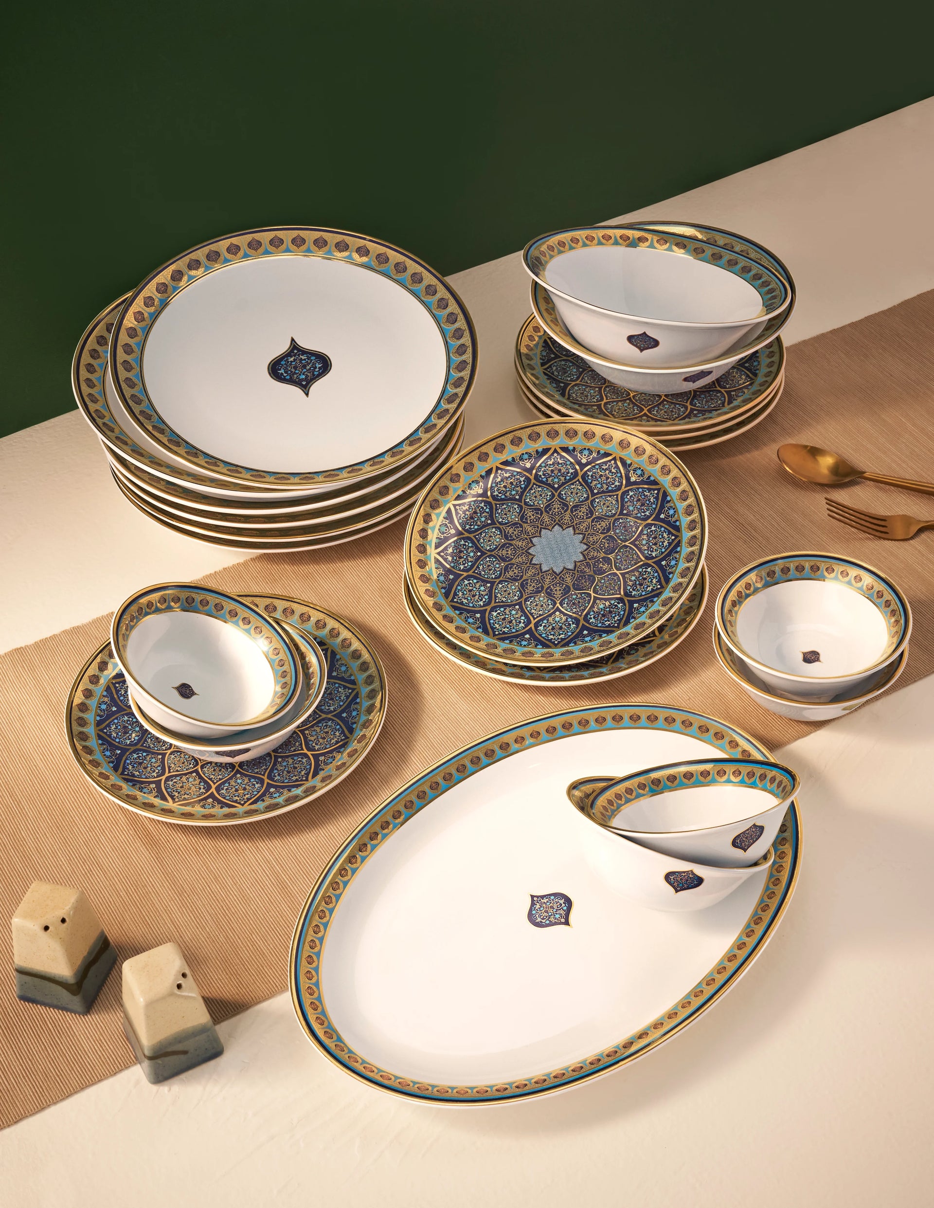 Our Neel Kamal’s elegant dinner set is the epitome of sophistication. Including dinner plates, side plates, bowls, and elegant cutlery, this set is perfect for creating a stylish table setting...