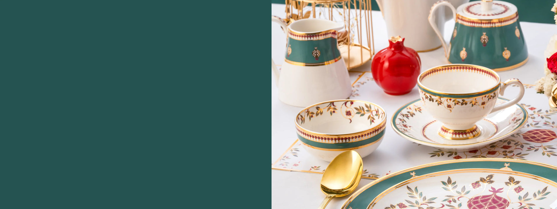 Start your day off right with our Swarn Mahal morning set, consisting of charming teacups, saucers and a teapot. Whether it's a hearty breakfast or a light brunch, this set...